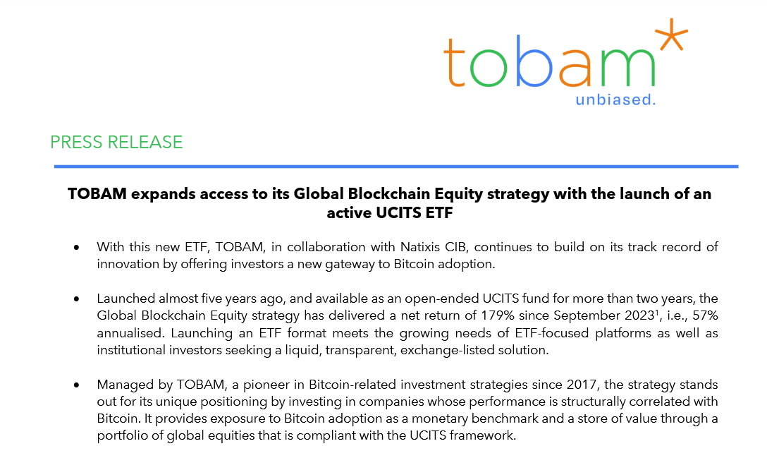 TOBAM expands access to its Global Blockchain Equity strategy with the launch of an active UCITS ETF