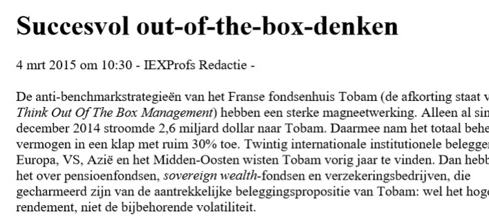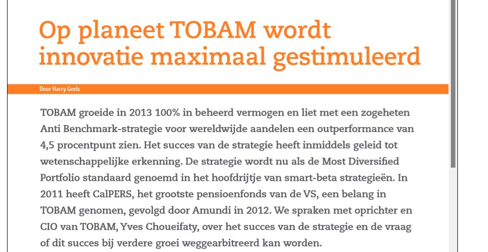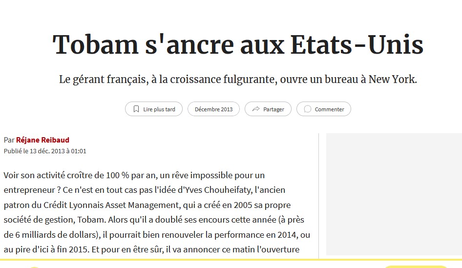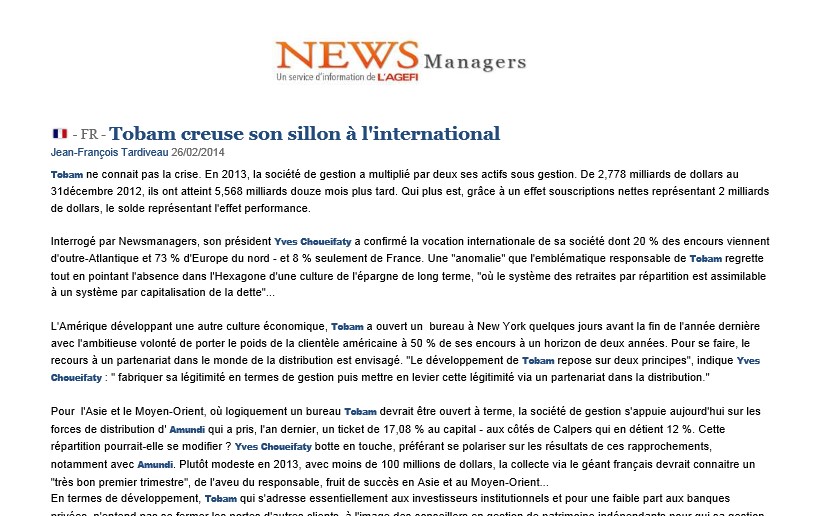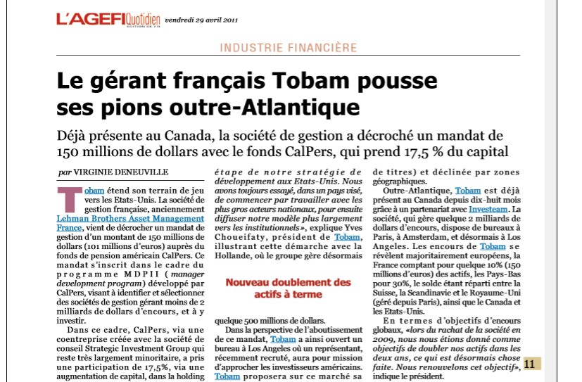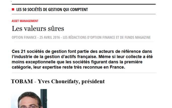 Ni filiale de banque ou d’assurance ni même coté en Bourse, TOBAM a du mérite.