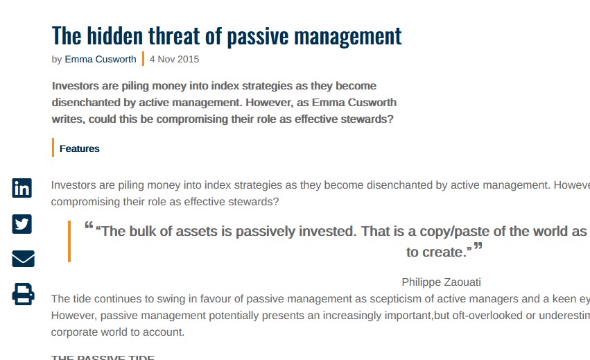 It’s a well known fact of financial life that active investment management is a waste of time and clients’ money. Investment managers as a group…