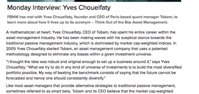 Yves Choueifaty in Financial news