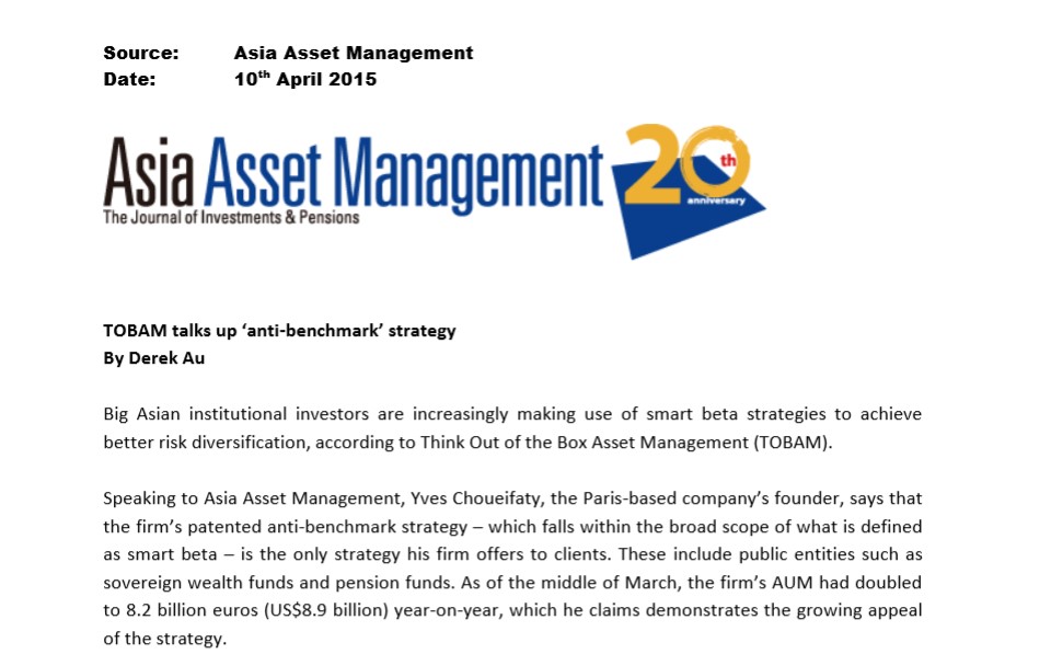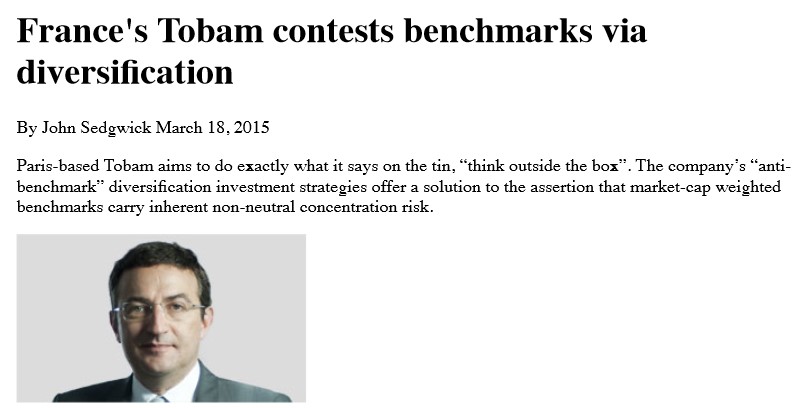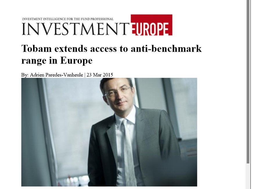 By: Adrien Paredes-Vanheule | 10 Jul 2015 TOBAM : the diversification challenge Paris based anti-benchmark manager Tobam is pursuing development in both institutional and retail…