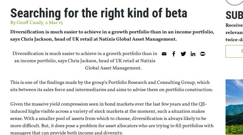 By Geoff Candy Diversification is much easier to achieve in a growth portfolio than in an income portfolio, says Chris Jackson, head of UK retail…