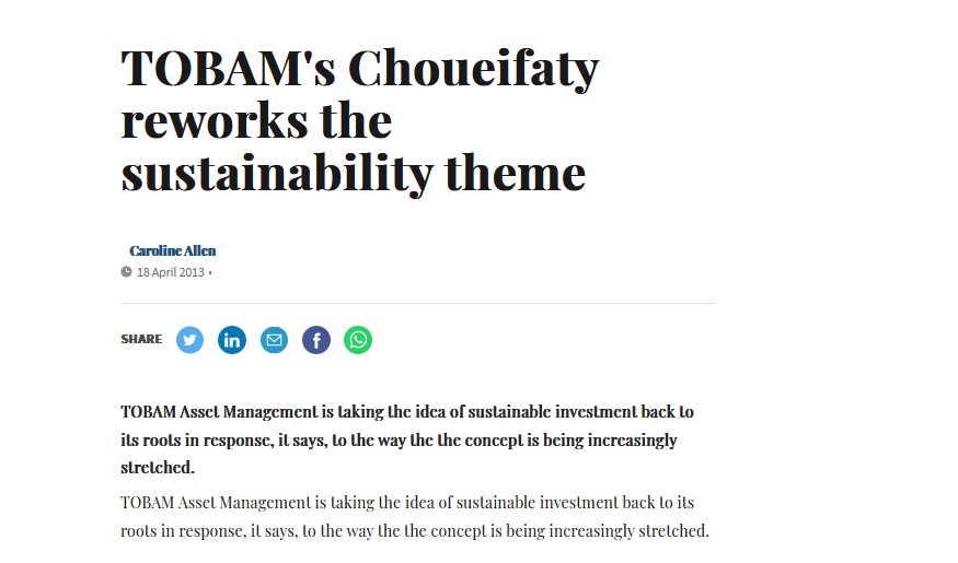 Discover our latest paper written by Philippe Bolopion (Managing director at TOBAM) on SustainableViews (Financial Times Group). In this article, Philippe analyses the rise of…