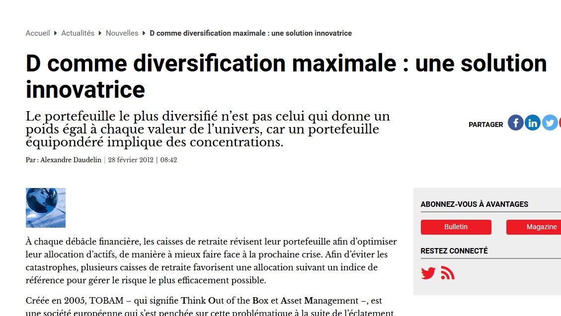 La théorie, mise au point par TOBAM, consiste à redistribuer le poids des titres selon le risque qu'ils portent. Un concept étendu à un nouveau…