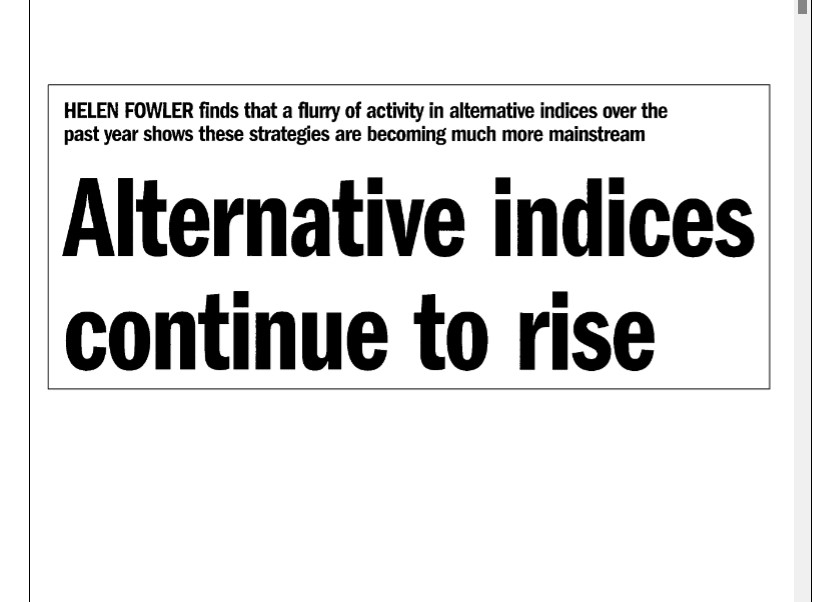 HELEN FOWLER finds that a flurry of activity in alternative indices over the past year shows these stratégies are becoming much more mainstream.