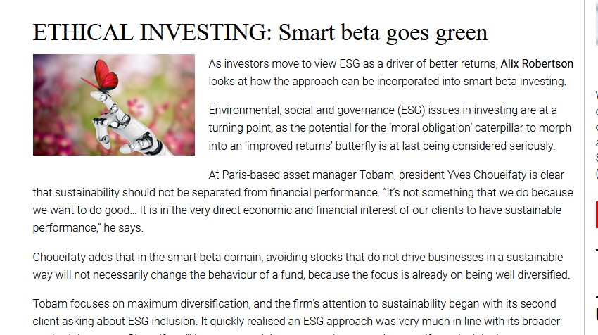 Quantitative asset managers aren’t particularly noted for prioritising ESG matters, and sure enough Parisian boutique TOBAM pursues an investment methodology, dubbed ‘Maximum Diversification’ or ‘Anti-Benchmark’,…