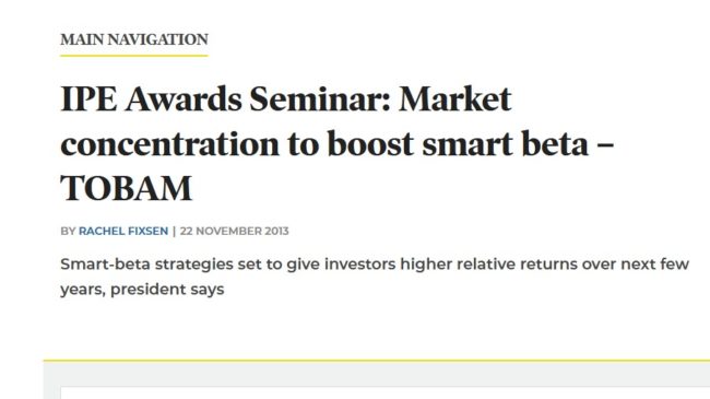 Smart-beta strategies are set to give investors higher relative returns in the next few years because market-cap weighted benchmarks have now become so concentrated, according to one of the sector’s key players.
