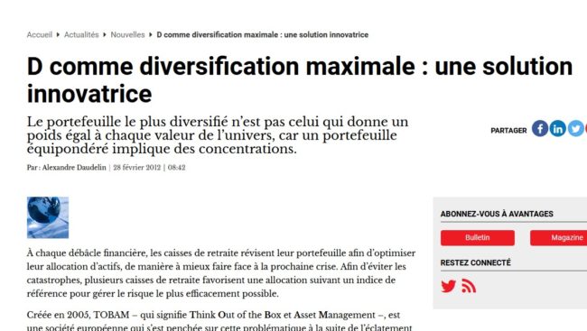 TOBAM étend son terrain de jeu vers les Etats-Unis. La société de gestion française, anciennement Lehman Brothers Asset Management France, vient de décrocher un mandat de gestion d’un montant de 150 millions de dollars.