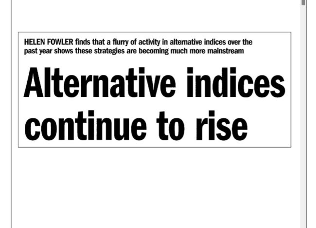 HELEN FOWLER finds that a flurry of activity in alternative indices over the past year shows these stratégies are becoming much more mainstream.